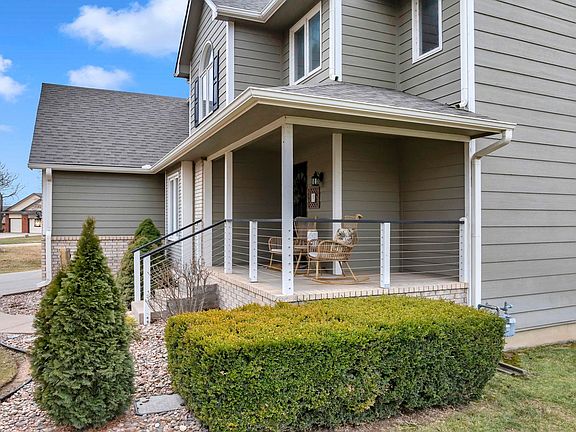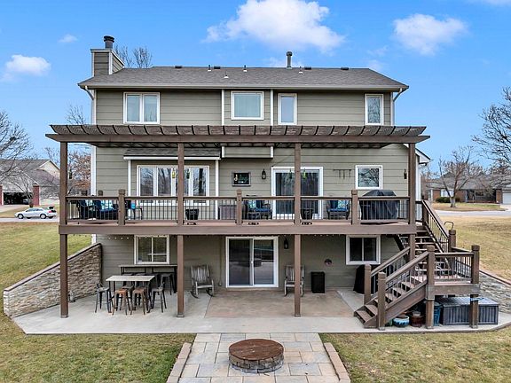 Backyard goals! This stunning home offers the perfect outdoor oasis for entertaining with a full-length deck featuring low-maintenance composite boards, a grill-ready spot right outside the kitchen sliding door, and plenty of space for a furniture set to relax and enjoy the Kansas sunset views. The walk-out basement leads you to the large, covered patio with granite tabletop and plenty of seating ready for guests. Bring your outdoor TV set and you have the perfect space to enjoy the game outside with family and friends. The backyard fire pit sets the scene for s’mores, drinks and summer gatherings. Inside, the home is just as impressive with completely remodeled kitchen! The custom-built large kitchen island is GOREGOUS with new white quartz countertops and intentionally seats five with added overhang. Additionally in the island is a hidden trash can, which is a game changer! With a new champagne gold kitchen faucet, apron-front farmhouse-style sink with slide in cutting board, new arabesque backsplash tile, new open shelving, pantry, timeless white cabinetry and new luxury vinyl plank flooring carried throughout the kitchen, dining, and living, home is completely move-in ready! Every room has been updated including the spacious luxury primary suite with designer feature wall, wall scones, huge walk-in closet and private en- suite bath with brand new quartz countertops, mirrors and fresh paint. The upstairs hearth room has been styled to perfection with built in shelves, cabinetry and new stone/tile surround to the inviting wood burning fireplace. Grab drinks from upstairs or downstairs with updated basement wet bar and built in refrigerator just steps from the patio. Endless home features include updated front porch cable railing, irrigation well, sprinkler system, newer roof (2019), new heating & air (2020), and new hot water heater (2024)! Home is located at the end of the cul-de sac and within the highly sought after Goddard School District. The Breezy Pointe community has the BEST 4th of July neighborhood parade!! Traditionally starting from this cul-de-sac, friends and neighbors ride with American flags held high with decorated bikes, golf carts, and festive dress around the neighborhood lake and end at the community pool with popsicle ready in hand! This truly is a special place to call home! Call today to schedule your private showing!