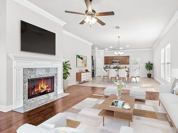 Immaculate 4 bed, 2 bath home in the sought-after Woodland Manor subdivision! Clean and open floor plan, perfect for modern living. Spacious kitchen equipped with granite countertops, a large island & a refrigerator, making it ideal for cooking & entertaining. Primary bedroom boasts an ensuite bath with a soaking tub, separate shower + a walk-in closet. Both guest bedrooms offer walk-in closets & ceiling fans for added comfort. Cozy gas fireplace enhances the living room, creating a welcoming atmosphere. Spacious laundry room, a 2-car garage & lawn service for convenience. Fenced yard that is pet-friendly, with approval, making it perfect for your furry friends. Don't miss the opportunity to live in this beautiful home! Call today to schedule a showing.