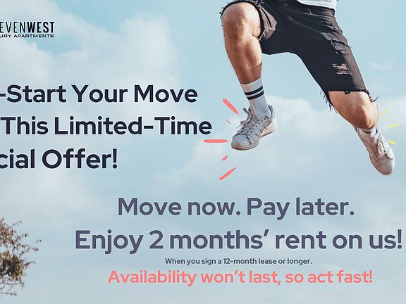 - Special offer! TWO MONTHS FREE in any one-bedroom unit, or One & A Half Months Free in any two-bedroom unit! Schedule your tour today!