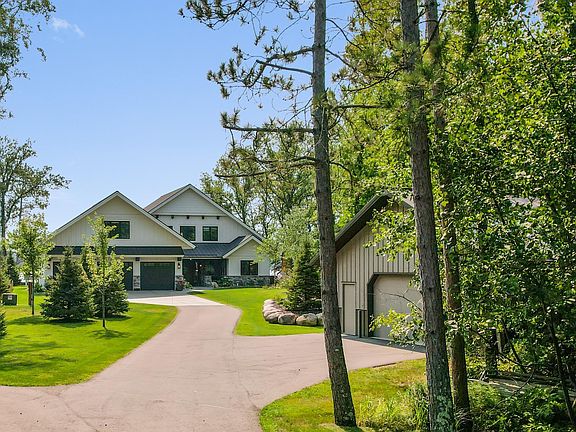 Nestled on the desired North shore of Trout Lake is this 5 bedroom 5 bath 4210 sq. ft. custom designed home which is situated on 101 ft of low elevation on Big Trout Lake. Beautifully landscaped lot with boulder accents boasts a Southern exposure with stunning lake views, easy walking access to the lakeshore and a patio area for entertaining or relaxing. Well-appointed home has a current design that offers everything you would want and more in a lake home. Main floor features one level living, floor to ceiling real stone fireplace, wooden cable railings, circle sawn oak floors, gourmet kitchen, pantry, luxurious lakeside master bedroom suite, office, mudroom with walk-in closet and laundry room. Upper level features 3 ensuite bedrooms with walk-in closets, bonus room and a bunkroom. Detached 3 stall garage and 30x45 pole building provide ample storage options. Venture out on the Whitefish Chain for a fun day of boating. Start making treasured family memories right here on Trout Lake!