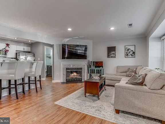 Located in the highly sought-after Lake Ridge community! This home offers three bedrooms and two and a half baths, featuring an open-concept main level ideal for entertaining. The gourmet kitchen is a true highlight, showcasing elegant white cabinetry, quartz countertops, stainless steel appliances, and a practical bar-height peninsula. The spacious living and dining area is anchored by a cozy wood-burning fireplace.