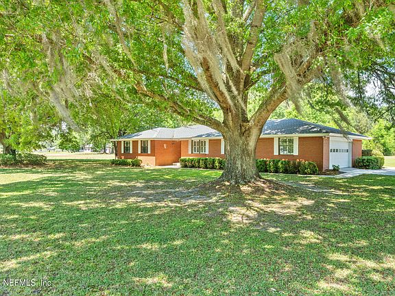 Back on the market thru no fault of the sellers! Second chance for this classic 3 bed/3 bath brick ranch home nestled under the oaks. Situated on 1 1/2 peaceful acres on a quiet country road, this home is move in ready. The original owners have taken excellent care with a new roof in 2021, hvac 2023 and just pumped septic replaced less than 10 years ago. Home is light and bright with LVT and plantation shutters throughout main areas, updated kitchen and baths and a large screened patio overlooking the sweeping back yard. Extra 3/4 bath off the garage. If you're looking for a great family home with room to expand and land to park your RV or boat, this is the home for you! No HOA! Termite bond in place. Fireplace is decorative only. Water treatment system leased.