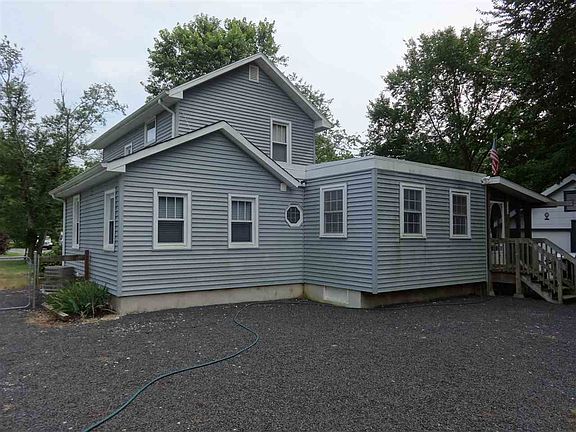 Country Home, freshly painted & new carpet make this ready to move in. Enter into the welcoming enclosed front porch through the pane glass door to the LR, large eat-in kitchen w/2 Ovens awaits your gourmet recipes. Den/TV Room w/PR leads to the screened in & ceramic tiled porch. 1st fl MBR suite w/whirlpool BA completes the main level. 2nd fl has 2 BR's and large BA. Great 5 acre property features a 2 car detached garage, "Doll House" & huge Pole Bldg. & above ground pool. Rear Yard is completely fenced.