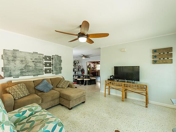 NEW PRICE! This home was made for entertaining with a spacious living room, dining area, and oversized family room that leads to a covered patio and the fenced backyard. The kitchen is updated with wood cabinets and stainless appliances. Home offers terrazo floors, plantation doors, laundry room, large workshop space, and more! Centrally located near shopping, dining, schools, & beaches.