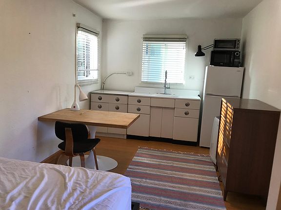 Fully furnished room over a garage with a kitchenette. Tenant uses bathroom in main house. No cigarette smoking. Main house is occupied by 7 friendly and calm gay men ages 26 - 61. Utilities are shared and average about $75/month.