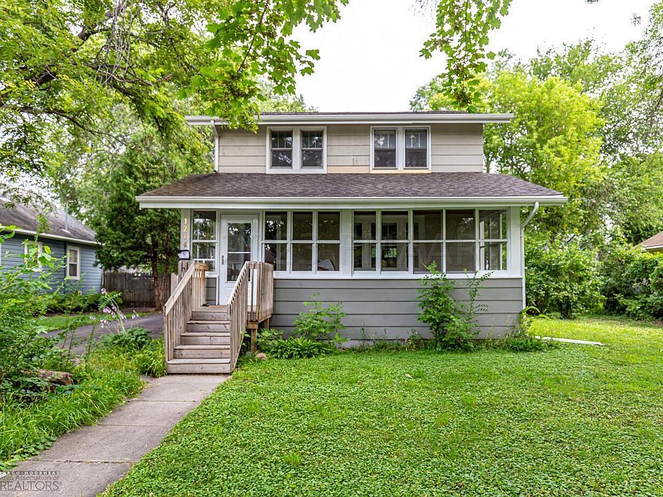 Discover this charming 4-bedroom character home with abundant natural light. The open concept first floor, highlighted by a kitchen skylight, creates a welcoming ambiance. The spacious double lot offers privacy with fences, lush bushes, and a canopy of trees. Enjoy the outdoors on the large back deck or three-season porch. The 2-car garage includes a 450 sq ft loft for versatile use. Basement offers storage and potential for a second full bath. Conveniently close to downtown, this property balances tranquility and accessibility.
