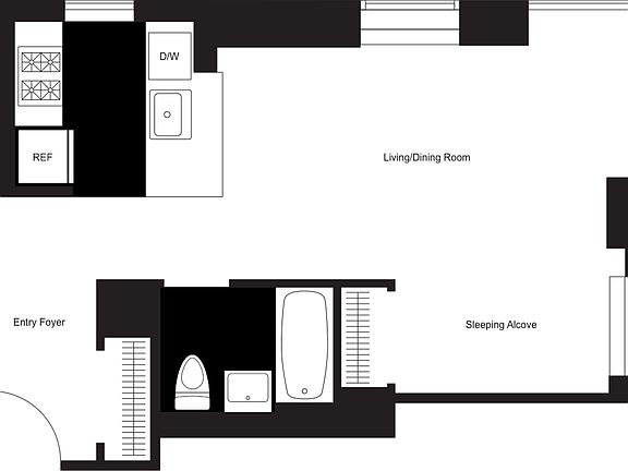 Corner alcove studioFloor-to-ceiling windowsAbove central parkWindowed gourmet pass-through kitchen