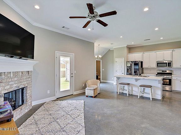 This beautiful home is like new! Purchased in 2021 and ready for you! It is a 3 bedroom, 2 bath home with a nice, fully fenced back yard. The home has a gas log fireplace, split & open floor plan and many amenities. The walls are a light grey neutral color to fit any color scheme and the floors are stained concrete. No carpet! The kitchen has stainless steel appliances and a gas range. The side by side refrigerator can also remain if you'd like! The master bedroom has a trey ceiling a wonderful bath with two vanities, separate tub and shower, and a large walk-in closet that also is a walk-through to the laundry room. So convenient! I love that feature. The laundry room also connects to the mud room area near the garage. Call for an appointment to view!