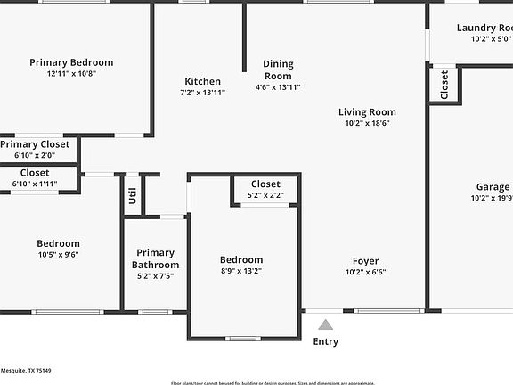 This beautiful 3 bedroom 1 bathroom single family home is located in Mesquite. The home is approximately 1,047 sq. ft. You'll love the exterior features that include a large front and back yard with lots of mature landscaping. The home also offers lots of interior amenities for your enjoyment too. The interior amenities includes: Large living area, an open kitchen that includes tile flooring and all appliances needed. The bedrooms are all large enough to fit any size bed. Homes like this will not last long!! Contact us today to schedule an appointment to view this great home.