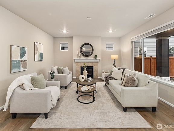 Discover serene living in at Soundview Estates. Featuring 5 bedrooms, 2.75 baths, including a luxurious primary bedroom with 5-piece en suite, large walk-in closet, and views of lush greenery, plus a main-floor bedroom with 3/4 bathroom. A spacious loft and expansive covered patio provide year-round entertaining. The 3,081 sq. ft. home boasts an oversized kitchen island with abundant cabinetry, a pantry, custom soft-close cabinets, quartz counters, stainless steel appliances, A/C, and a fully fenced yard. High-tech cable, smart home devices. Oversized garage w/storage. Situated on a prime land at the end of the street, overlooking a greenbelt with nearby trails and a playground - an ideal setting for comfort, seclusion, and modern living.
