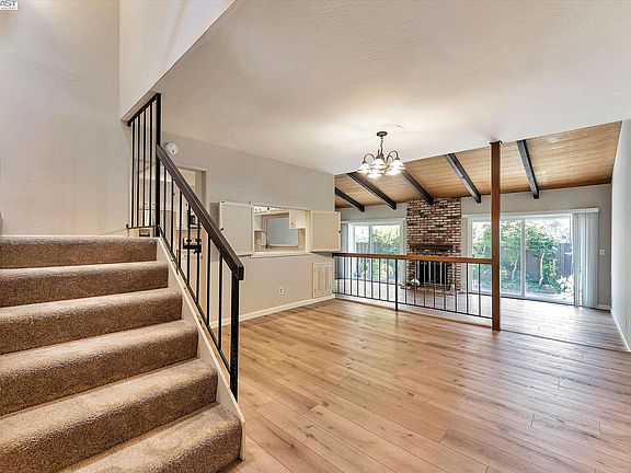 Tranquil retreat-like, Two-Level Ballena Bay waterfront neighborhood. Bright & Open living room with fireplace & a serene backyard view, creating an inviting atmosphere. Abundant natural light floods the space through 2 expansive sliding glass doors, enhancing the ambiance of the vaulted ceiling living area & dining space. Many home upgrades including remodeled kitchen with quartz countertops, refaced white cabinets, recessed lightings, dual pane windows, laminate wood floors downstirs, sliding glass doors, a skylight, fresh interior wall & ceiling painting, new carpets, upgraded bathrooms, French door, furnace, water heater, wine cellar rack, garage door, & more. Unwind in the peaceful backyard, adorned with mature lemon, camelia trees, all secured by side gates. Attached 2-car garage provides convenience, while the indoor laundry area is equipped with a washer&dryer. Two bedrooms have good size closet, 3rd bedrm as a home office. Quiet& friendly neighborhood- this 2 level townhouse style condo offers a convenient lifestyle with distance to community pool, Ballena Isle Marina Yacht Harbor, restaurants, cafes, beaches, parks,& Paden Elementary School. Excellent commuter location close to Ferry Terminal &downtown Oakland. Close by to South Shore dining, Safeway, Target, & more.