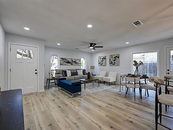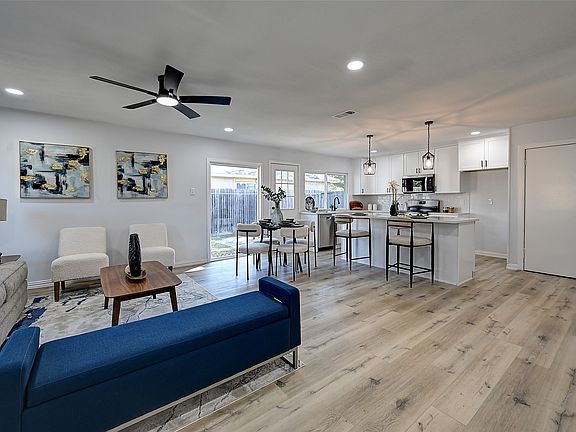 Fully updated one-story home in desirable Westwood Estate with excellent Lewisville ISD schools—Vickery Elementary, Hedrick Middle, and Lewisville High. This 3-bedroom, 2-bath home offers 1,399 sq ft of modern living with a spacious two-car garage. Interior and exterior have fresh paint and texture, new windows, updated fixtures, lighting, and luxury vinyl plank flooring throughout. The kitchen features quartz countertops, recent stainless-steel appliances, and upgraded cabinetry open to the dining and living areas. Both bathrooms include stylish tile and quartz finishes. The primary suite offers a private bath and walk-in closet. Outside, enjoy a large backyard shaded by mature trees and enclosed with a wood privacy fence, perfect for entertaining or relaxing. Convenient to I-35E, Old Town Lewisville, schools, and shopping. A move-in-ready home with high-quality updates in a quiet, established neighborhood.