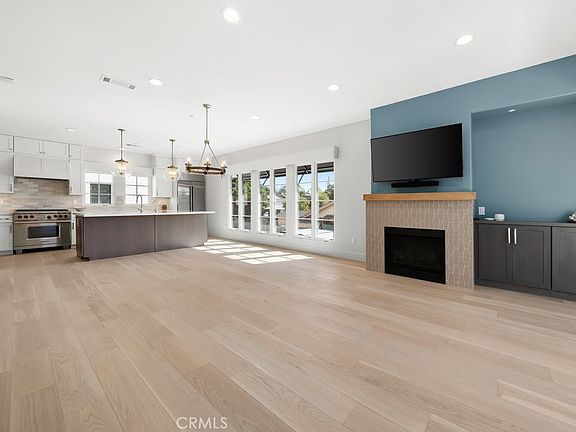 The ground floor offers a stylish entry with designer wall coverings, Spanish lighting, Italian tile, custom closet, privacy-glass door, and upgraded lighting. The two-car garage has resin flooring, built-in storage, and key fob/pad entry.