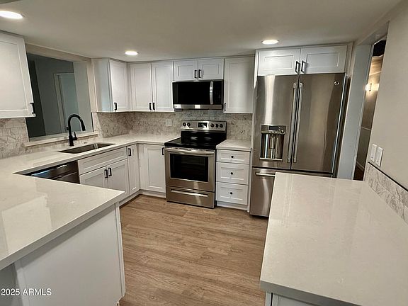 Beautifully remodeled 3-bedroom, 2-bath home in the heart of Central Phoenix with stunning mountain views! Enjoy brand-new cabinets, appliances, paint, and flooring throughout. Relax by the charming free-standing fireplace or get creative in the spacious workshop with roll-up garage door. Steps from hiking and biking trails, minutes to the 51, and surrounded by trendy restaurants—this home offers the perfect mix of style, comfort, and an unbeatable location!