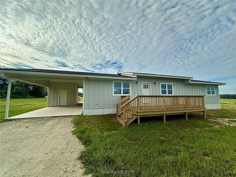 COUNTRY LIVING IS EASY - AND THIS NEWLY REMODELED HOME MAKES IT EASIER. Situated on about 2.5 acres, this fully renovated home boasts a spacious, airy feel with vaulted ceilings throughout the common areas and numerous windows enhance the open atmosphere. The heart of most homes is the kitchen. Here you'll find a beautiful kitchen equipped with new cabinets, sleek stainless steel appliances including refrigerator, an island for meal preparation or casual dining, and a cozy breakfast area ideal for enjoying your morning coffee. Friends and family can enter through the covered carport and will enjoy hanging out on the spacious front and back decks. Three generously sized bedrooms and two fully renovated bathrooms offer both comfort and functionality. The acreage provides plenty of room for animals, a barn or pens if desired. It also makes perfect private retreat where you can indulge in gardening, host gatherings, or simply relish the serene surroundings. Excellent school district. This pier and beam home was renovated top to bottom with all new hardi siding, roof, HVAC, sheetrock & paint, wiring, plumbing, septic, new bathrooms, kitchen and flooring. All you have to do is move in and enjoy!