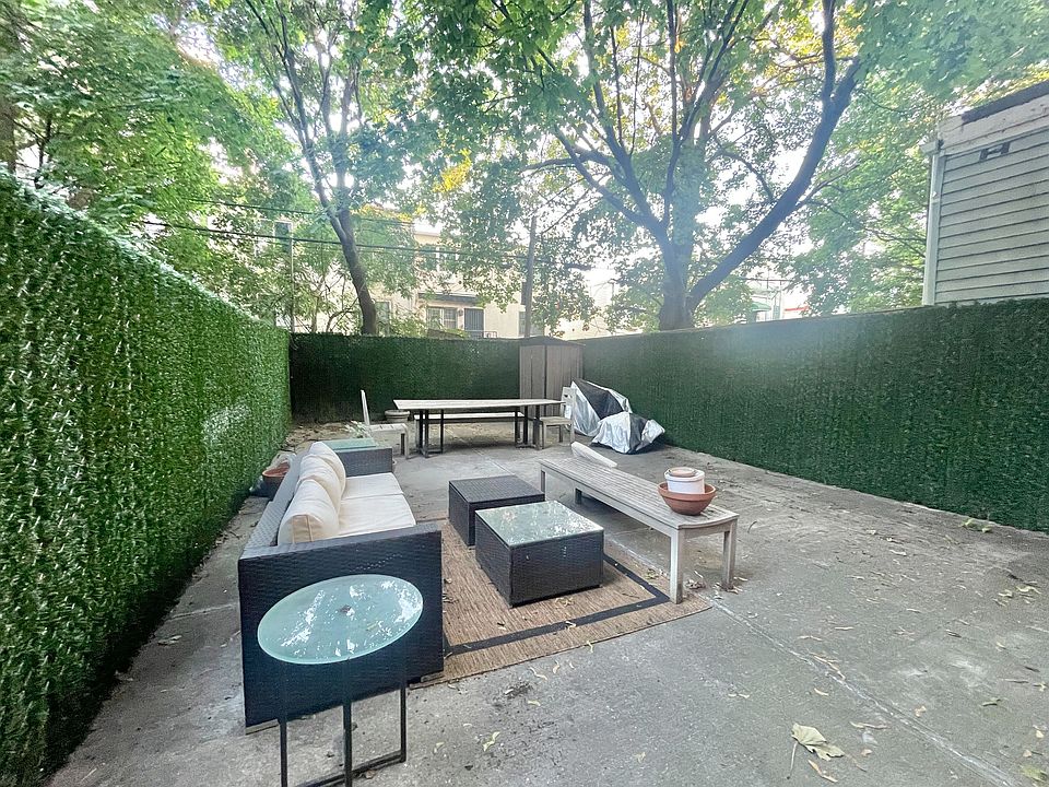This bright 2-bedroom, 1-bathroom + HUGE PRIVATE BACKYARD apartment offers a functional layout with plenty of natural light. Enjoy hardwood floors, a comfortable living space, and a kitchen with ample cabinet storage. Both bedrooms are well-sized, making it ideal for a couple, roommates, or a home office setup. Located in the heart of Bushwick, you'll be steps from vibrant cafes, art galleries, and nightlife, with easy access to multiple subway lines for a quick commute.