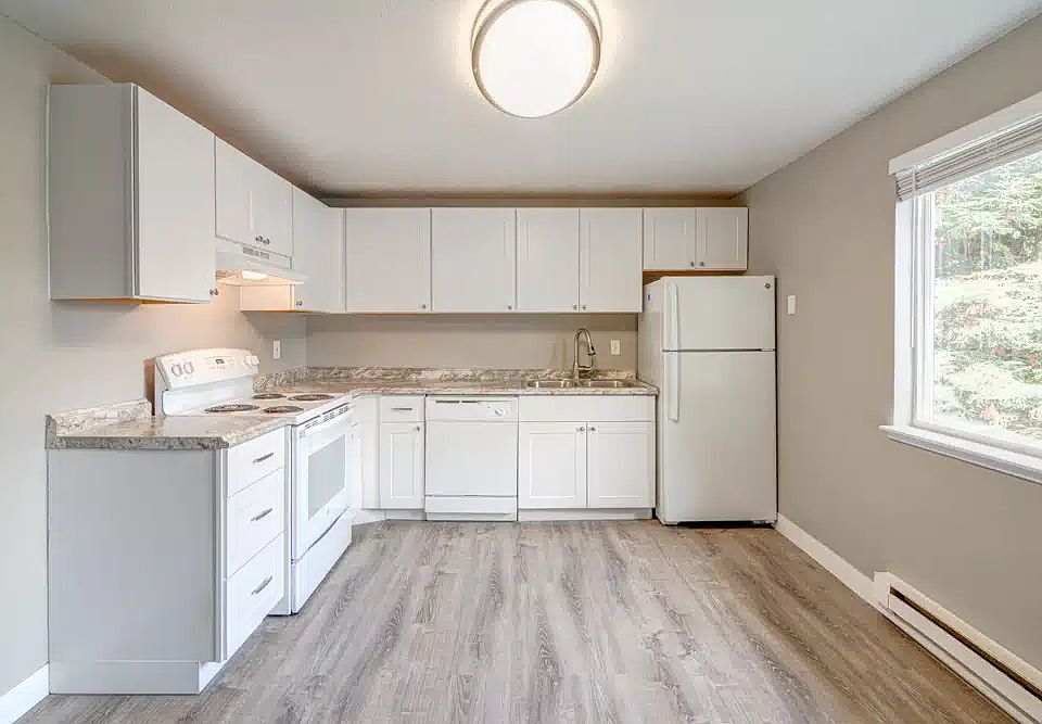 Huntington Apartments is located at 1214 Harvey RD NE, Auburn, WA 98002. It features a beautifully remodeled 2 and 3 bedroom units and conveniently located in the heart of Auburn. In just a few minutes walk, you can find yourself grabbing a coffee, shopping, dining, getting your hair cut, visiting your bank, and more. Additionally, Huntington is stationed right on the bus line, making it easy to get out of town or commute to work! Huntington offers washers/dryers in all units, and will soon offer assigned parking spaces. Get in touch with our leasing office today to tour one of these spacious homes!