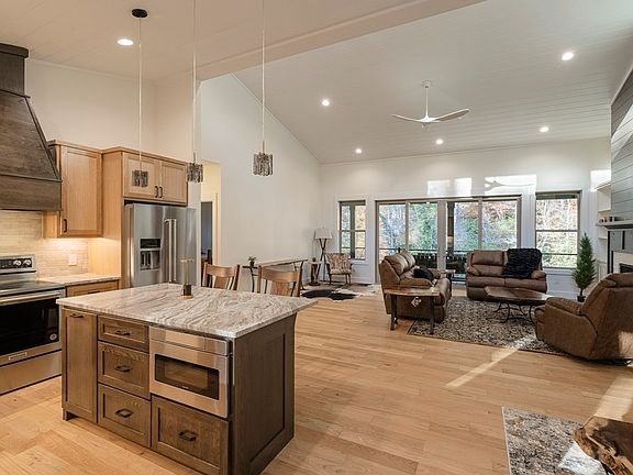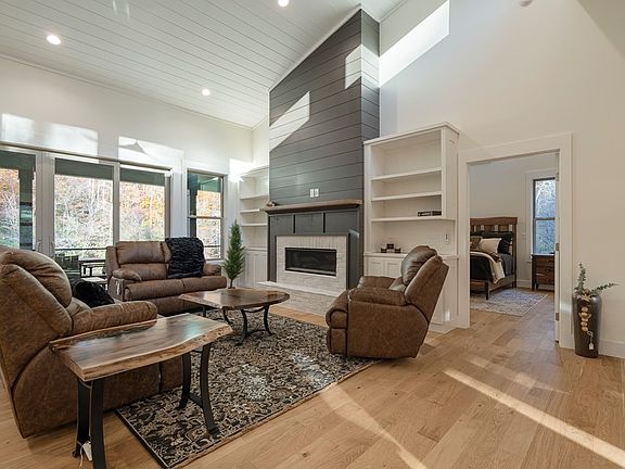 Discover the perfect combination of luxury, craftsmanship, and mountain charm in this brand-new 3-bedroom, 2-bath home nestled along the bold waters of Youngcane Creek. Thoughtfully designed to capture the natural beauty of its setting, this home offers soothing creek sounds, wooded views, and a seamless connection between indoor and outdoor living. Inside, you'll find soaring tongue-and-groove ceilings, an open layout, and expansive sliding glass doors that frame the creek beyond. The living area showcases warm wood finishes, a sleek modern fireplace, and abundant natural light that enhances the home's bright, inviting atmosphere. The kitchen is a showpiece of both style and function, featuring custom cabinetry, solid-surface countertops, stainless-steel appliances, and designer fixtures. The primary bedroom enjoys views of the creek and easy access to the main living spaces. Its adjoining bath features a tiled walk-in shower, double vanities, and beautiful finishes that elevate everyday living. Two additional bedrooms and a second full bath offer flexible space for family, guests, or a home office—all built with the same attention to quality and detail throughout. Step outside to a spacious covered deck overlooking Youngcane Creek, complete with an outdoor fireplace that creates a perfect spot for entertaining or quiet evenings by the water. The sound of the creek and the natural surroundings make this setting truly unforgettable. Conveniently located just minutes from town yet tucked away in a peaceful setting, this home is ideal as a full-time residence, weekend retreat, or short-term rental investment. With stunning finishes, exceptional craftsmanship, and a rare creekfront location, this property captures the very best of North Georgia living.