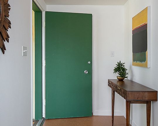 In 1960, life seemed less complicated, which is part of why midcentury style is so popular today. This home is a good example. The simple, clean lines, high open-beamed ceilings give a feeling of space, of expansiveness, of endless possibilities. The layout is straightforward, providing spacious rooms and a workable floor plan that includes an entry hall, a true master with its own bathroom, and a kitchen/dining room with plenty of space for cooking and entertaining. Recently refreshed with cork flooring, neutral interior paint, updated light fixtures, this is a wonderful combination of original style and modern touches. Located in a private setting just a few steps from Hill Drive, the feeling is almost like it's on a country road, perched up from the street to take advantage of awesome views.The backyard has a covered patio off the dining room perfect for al fresco dinner parties, sunset cocktail parties on the flat sports court. There is also a private nook (with view) for the spa.
