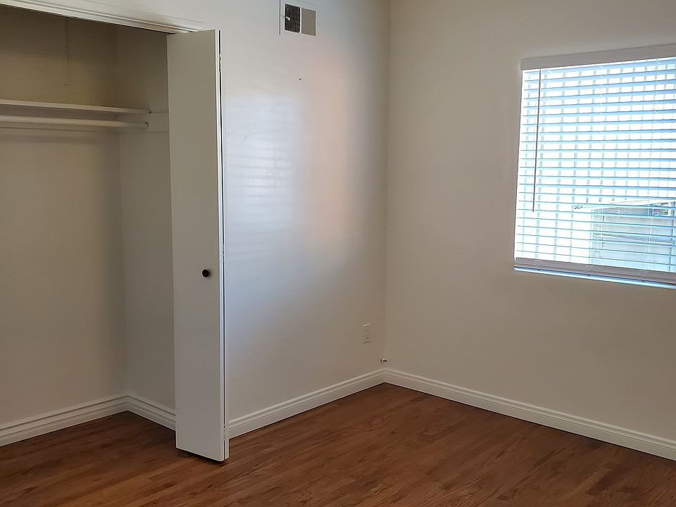 ROOM AND HOUSE: Room (11 x 10), ceiling light/fan, shared bath with one person, one-story house with quartzite kitchen, island and peninsula, walk-in pantry, 25cf refrigerator, 5-burner range, and dishwasher. Washer/dryer use. Original hardwood flooring throughout, floor-tiled baths. Dual-pane energy efficient windows, 10-foot sliding door to covered patio with canyon view to one side and bit of city view to other side.
