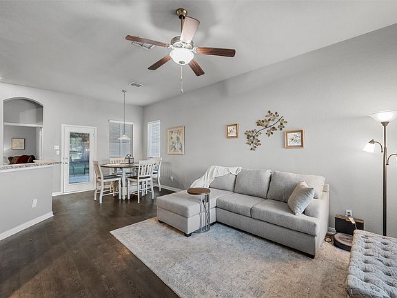Open floor planStainless steel appliancesKitchen with granite countertopsCovered back patioWelcoming breakfast areaFenced backyardDual sinks