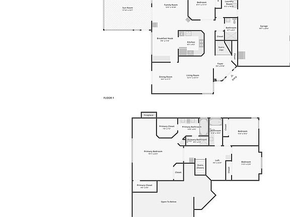 Upstairs features 3 bedrooms and 2 bathrooms, including a large master suite with double-door entry, high ceilings, a private seating area with fireplace, two closets (one walk-in), and a spacious master bath with double sinks, separate bathtub, walk-in shower, and skylight.