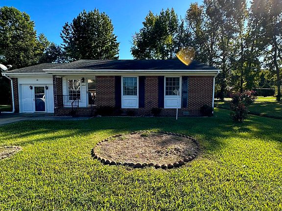 This well-kept brick ranch is tucked away on a quiet street with backyard options for convenient city living on a corner lot. 4 bedrooms, and 1.5 baths could easily be transformed into a primary ensuite with the relocation of the water heater. Living room, eat-in kitchen, laundry room, 2 walk-in closets and storage throughout. Udpated with replacement windows. Garage was converted to a family room, but could be utilized as a play area, casual den or as a garage if desired. Lovely mature trees shade a brick paver patio for privacy. Near ECSU, primary schools and USCG.