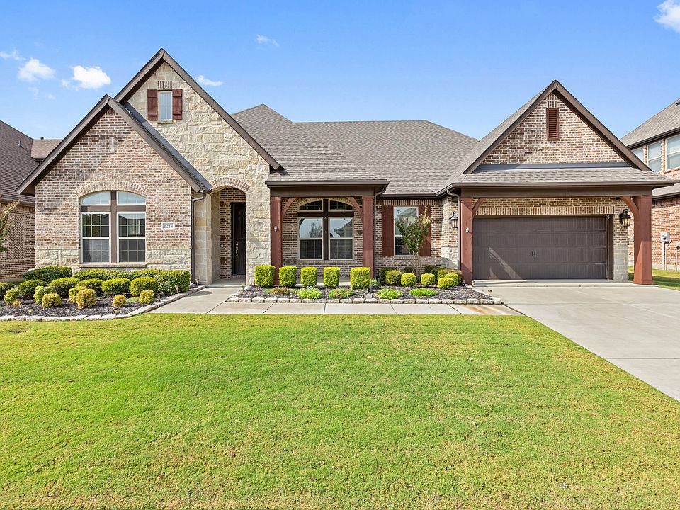 Back on the Market and Move-In Ready just in time for the holidays! Discover over 3,335 square feet of refined single-story living in this beautifully designed home. With four spacious bedrooms and three and a half baths, this open-concept floor plan perfectly balances elegance and everyday comfort. The gourmet kitchen is a chef’s dream, featuring abundant cabinetry, a built-in menu planning desk, and seamless flow into the inviting dining and family rooms. Custom plantation blinds accent the kitchen, dining, and living spaces, adding both sophistication and privacy. The primary suite is a true retreat, offering a large California closet and a luxurious en-suite with dual vanities and a relaxing soaking tub. Step outside to the screened-in patio with sleek epoxy flooring—ideal for entertaining or unwinding in any season. The 2.5-car garage also features matching epoxy floors for a polished, durable finish. Additional highlights include an eco-friendly solar panel system to help cut energy costs and a thoughtfully designed workspace with seating for two—perfect for remote work or study. Located within the highly acclaimed Mansfield Independent School District and just minutes from top shopping and dining, this home combines luxury, comfort, and convenience in one stunning package. Don’t miss your chance to call this exceptional property home!