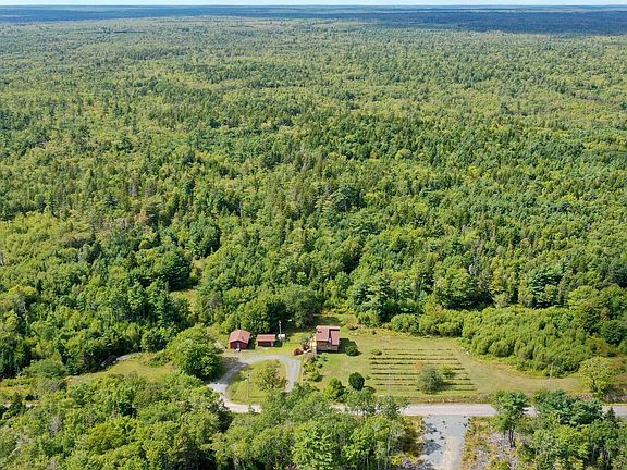 30 Acres with Custom Home, Vineyard, Gardens & Endless Potential. Tucked away at the end of a quiet road, this custom built 2-bedroom, 2-bath home offers privacy, peace, and natural beauty on a property unlike any other. Surrounded by manicured flower gardens, apple trees, high bush blueberries, mature woodland, and a grape vineyard that used to supply a local winery. It includes two additional vacant lots with potential for future development or subdivision. Multiple outbuildings, including one formerly used as a two-bedroom cottage offer versatile space for storage or bunkies. The greenhouse is a gardener’s dream, while the wired, 20’ x 14’ garage is ideal for car storage and a workshop. The home features a functional kitchen, cozy living room, and bright sunroom, with the impressive primary bedroom boasting his and her closets. Accessibility is well-planned with an outdoor wheelchair lift (also perfect for groceries and furniture) and a removable inside stair lift. Enjoy the spacious wrap-around deck with nature and distant water views, and stay comfortable year round with heat pumps for heating and cooling, electric baseboards, a Pacific Energy wood stove, and a generator with GenerLink. This exceptional property is perfect for those seeking tranquility, character, and endless possibilities.