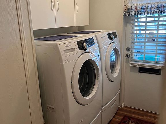 Regal Park is here to welcome you to your new home! This quaint 55+ community is filled with friendly neighbors and is in the heart of Largo and Pinellas County where there are many activities and areas to explore! Regal Park amenities include a clubhouse, pool and shuffleboard and the reasonable maintenance fee of $616.00 per month includes your water, sewer, lawn and garbage. *Please note...Regal Park is a no pet community...Service animals only* INTERIOR FEATURES: This large 2-bedroom, 2-bathroom home, at over 1,400 sq. ft, is loaded with upgrades and modern updates galore! Entering the home from the side entrance you will walk into your separate indoor laundry room. This is a rare treat indeed with full-size washer and dryer. Note how cool and comfortable the home is thanks to your newer HVAC (2017) and ceiling fans with lights in every room. The new waterproof vinyl flooring (2022) throughout the home adds a modern touch and is easy to clean. Your kitchen is a dream come true with stainless steel appliances, a closet pantry, eat-in area and a newer island (2019) with power and a granite countertop! What more could the chef in your home ask for? In addition to the eat-in area in the kitchen, there is also a breakfast bar for quick cups of coffee or snacks. From the kitchen you will step into your generous-sized formal dining area which opens up to your living room. The living room is the perfect size to entertain family and friends. From the living room you can go thru to your raised Florida room that is separate with its own A/C unit and door so it can be closed for privacy. You can also enter the Florida room from the front door of the house. This room is currently set up as a bar/entertainment area, but could also easily be used as a reading room, extra space for overnight guests or a home office. On the other side of the home are the bedrooms and bathrooms. The guest bedroom is a great size for guests and has its own walk-in closet; while the guest bathroom across the hall has a shower/tub combination and updated sink and toilet. The master suite is spacious with raised ceiling and a walk-in closet. In addition is the en suite bathroom, which has a walk-in shower with a bench and updated sink and toilet. EXTERIOR FEATURES: Not only does this home wow you from the inside, but on the outside as well! The list of upgrades on the outside is not to be beat. In 2020 there was the installation of: a new shingle roof, new high impact windows, new aluminum awnings and a new lower screened-in porch added! Then in 2021 there was an 8-camera security system installed - what a great addition for peace of mind. Lastly, in 2022 there was a new water heater installed. But the upgrades continue with an irrigation system and an amazing backyard patio area that is private, landscaped to perfection and a wonderful outside oasis to gather with friends and relax. At the end of the driveway is a 12x12 shed which is currently being used as a workroom. It also has an extra refrigerator which will stay in the shed. Best of all, you only have a neighbor on one side of the home! The asking price of this beauty is $175,000. (The home comes unfurnished; however, all the furnishings and the golf cart are negotiable.) The Largo area is rich in activities offering a botanical garden, public park with library, the Pinellas trail for walking and biking trails and of course, a wide choice of beaches all along the Pinellas County coastline. Don't hesitate, this captivating home with its amazing list of upgrades will be gone before you know it! Call to set up your appointment today!!