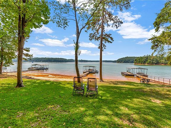 This is the ideal lake get away. Approximately 5 minutes from I-85 off exit 4. LEVEL LOT with wide, open views. Covered slip dock with jet ski lift. This updated doublewide offers 2 bedrooms/2 baths. Brick crawl space foundation with storage space underneath. Mostly furnished. This little gem has been de-titled and reassessed as real estate. The screen porch is perfect for relaxing and enjoying your lake views. See associated docs for property disclosure, personal property checklist, survey, dock permit, foundation certification, title retirement. Courtesy Corp Inspection has been ordered from ranger Brian Peterson.