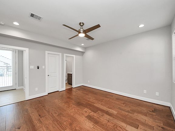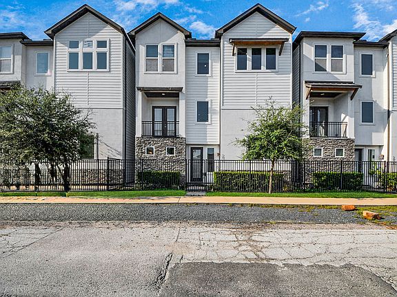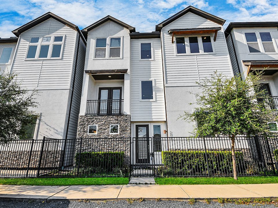 Welcome to UPTON PARK! Modern living perfectly positioned in EaDo just minutes from I-10, I-69, Downtown Houston, and the new East River. This sleek 3-story freestanding home offers 3 bedrooms, 3.5 baths, a 2-car attached garage, and a gated enclave vibe for extra privacy. The first floor features a secondary bedroom with a private bath and walk-in closet. Main living on the second floor showcases an open-concept layout with luxury vinyl plank flooring, MASSIVE windows, and access to a private balcony. The gourmet kitchen shines with stainless steel appliances, quartz countertops and a large island; the dining area flows seamlessly into the family room for effortless entertaining. Upstairs, the owner's suite impresses with a generous walk-in closet, and a spa-inspired bath featuring dual sinks, a large soaking tub, and a separate shower. Minutes from major dining, entertainment, and Houston's top employment hubs. All appliances included Refrigerator, Washer & Dryer!