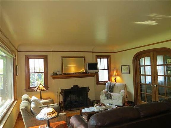 Charming 1938 brick 1 3/4 story Tudor style home. Beautifully maintained with hardwood floors, natural woodwork, crown molding, 2 update baths, French doors to main floor bedroom/office. Nice kitchen w/gas range, marble counters and eating space. Family room w/wet bar in lwr level. Tandem oversized 1 1/2 car garage/alley access. Great fenced yard and back entertainment sized deck.