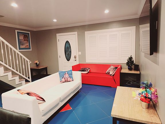 Anaheim 4flex corner Cerritos/ Harbor street 1300 sqft 3 bedrooms, 2 bathrooms, fully furnished, 1st floor has the living room+ kitchen+ 1 full bath room with 2 sinks. Up stair has 3 bedroom and 1 full bathroom, Recently remodel, central AC, tile up stair and downstair floor, new paint, recess light, shutter windows. It is about 5 minutes from the Disneyland. Double Garage for 2 cars. Laundry room is located on the other side of the apartment for your convenience and is coin operated. No pets, no smoking, drinking, drugs. Rent is $5,950 per month with one month lease minimum. Owner pays all utilities.
