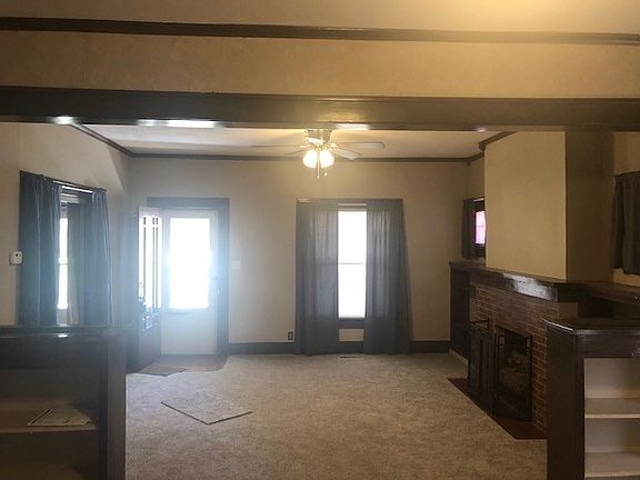 Old style charm with updated finishes! Seller will consider owner finance with approx. $10,000. down payment. Additional room towards back of home has central heat and air & fireplace making it the perfect man cave! Updated ceramic tile, central heat and air, carpet, and bath. Large utility room. Unfinished basement. Attic fan. Garage and 2 water wells on property need some work and are sold as is. Seller has an inactive or expired real estate license in TX.