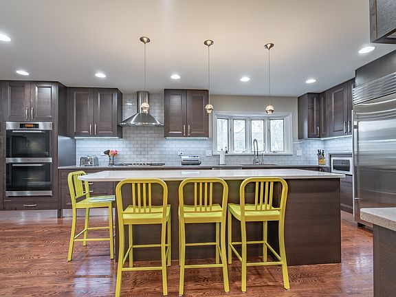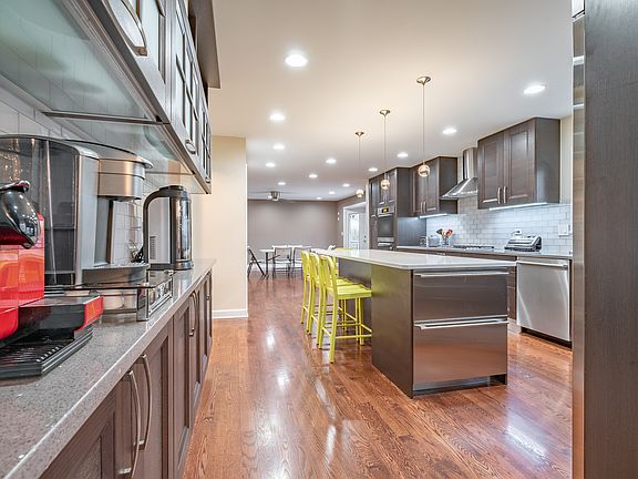 WELCOME HOME...An updated, turn-key with stellar finishes will make you feel at "HOME". As you walk through the new front door, to a porcelain tile foyer with an Oak staircase will impress most. You cannot miss the custom kitchen cabinets from Italy and all the high-end stainless steel appliances including a Subzero fridge and separate 2-drawer freezers built into the island cabinets. Quartz tops on the large island as well as the rest of the kitchen, gleam with all the custom pendants and under cabinet lighting. Hardwood floors throughout the home. Don't forget the office/bedroom on the first floor with a full bath attached for those with an in-law arrangement. 4 large size bedrooms upstairs. The master will not disappoint, with the walk-in closet and huge master bathroom with Grohe fixtures. The wood burning fireplace has porcelain tile surrounding and a granite hearth for those cold winter days. The kids will have their own finished basement/rec area.This home has tons of storage.