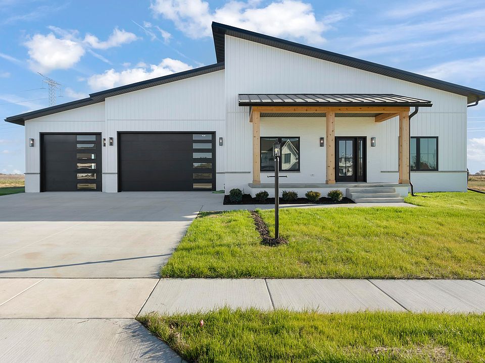 NEWLY CONSTRUCTED MODERN-STYLE LUXURY RANCH located in the highly desired Orchard Hills subdivision. This impressive home offers 4 bedrooms, 3 full baths, & over 3,800 sq. ft of finished living space, plus an additional 1,146 sq ft of finished garage space. A true highlight of the property is the extraordinary multi-bay garage, w/ tandem capacity for up to 6 vehicles, 10-foot doors—perfect for car enthusiast, hobbies, or workshop. Inside, the home welcomes you w/ soaring 13-foot ceilings & a grand open-concept design connect the entry, the stunning kitchen, & expansive great room w/ a beautiful fireplace. The result is an atmosphere of effortless luxury & ideal flow for both intimate gatherings & larger-scale entertaining. Off the foyer, French doors open to a spacious home office, perfect work-from-home environment & the flexibility to serve as a fifth bedroom if desired. The main-level primary suite provides a serene, spa-inspired retreat, featuring a tiled walk-in shower, dual vanities, a walk-in closet, & French doors granting private access to a secluded deck—a peaceful spot for morning coffee or evening relaxation. The main floor also includes a second bedroom & a well-appointed laundry room complete built-ins & a drop zone. The finished lower level enhances the home's living & entertainment spaces, offering two generous bedrooms w/ natural light, a full bath, & large family room ideal for a home theater, game room, home gym, or any combination to suit your lifestyle.