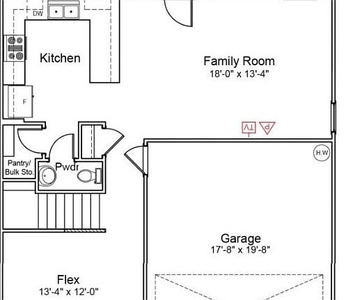 The entryway of this 4 bedroom, 2.5 bathroom home opens onto a flex space that you can turn into a home office or a dining room. Just past it, the kitchen leads to a walk-in pantry and the family room. . Upstairs, a laundry room and a full bathroom are conveniently located near the three spare bedrooms. The primary bedroom is connected to its primary bathroom and walk-in linen and clothes closets.
