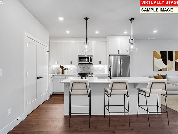 This new construction townhome is located in Scholls Heights, a community near greenspaces, shopping, schools, and dining. The Harper plan offers an open main floor with a modern kitchen, dining area, and great room leading to a covered patio with xeriscape landscaping. Upstairs, three bedrooms are located near a versatile loft, including the primary suite with a spa-inspired bathroom and walk-in closet. Interior highlights include quartz countertops, upgraded slab-style cabinets with under cabinet lighting, and luxury vinyl plank flooring. Other upgraded premium features include a picket-style backsplash and matte black hardware. This home also includes central air conditioning, a refrigerator, washer and dryer, and blinds—all at no extra cost! Located on homesite 104, this home is expected to be complete in winter 2025. Rendering is artist conception only. Photos are of a similar home, features and finishes will vary.