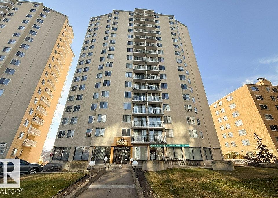 PRIME LOCATION in a TOP OF THE VALLEY Adult Building, unit with a spectacular never-ending view of the River Valley, Victoria Golf Course & much more. Meticulously maintained CONCRETE building. This 1 bed, 1 bath, IN SUITE storage room, Patio Doors to your SW facing large balcony, windows throughout flood the UNIT with natural light. NEWER water proof flooring from After Eight Flooring, NEWER paint. AMENITIES include AMPLE VISITOR parking at back of building, a SOCIAL ROOM, EXERCISE Room, Steam Sauna, Bike storage and FREE laundry in a pleasant space. The current owner rents (month to month) U/G Parking space in the building for $60. month. Very WALKABLE location near the Promenade, Safeway directly across Jasper Ave, great access to 124 ST and all it has to offer, many restaurants, shopping, Oliver Square, transportation and the new LRT line going in on 104 Ave. CONDO FEES INCLUDE all utilities: electricity/water/sewer/heat. On site Caretaker Monday - Friday.