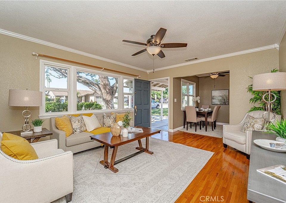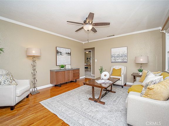 Welcome to this lovely traditional home located in one of the nicest neighborhoods in Chino. This turnkey recently remodeled single story home welcomes you to an updated 3 bedroom, 1 full bathroom on a 7,800 square foot lot. The open floor plan offers a living room and dining area with original hardwood floors, and a spacious remodeled kitchen with new quartz countertops, new glass Mosaic Linear tile backsplash, new tile floor with new stainless steel appliances. The entire interior has been recently painted with new carpet in the bedrooms and hallway. The large back yard with a 2 car detached garage and RV parking is private and perfect for entertaining, adding a pool, ADU or endless possibilities. Additional features include the repainting and remodeled bathroom, new interior doors, crown molding, new ceiling fans, replacing and adding of a newer HVAC system, upgraded electrical panel, newer copper pipes, new concrete driveway, newer septic system, newer windows, insulation and more. Short distance to schools, parks, shopping, restaurants and 60/71 freeway. This ready to move in cute home is a must see, it will not disappoint.