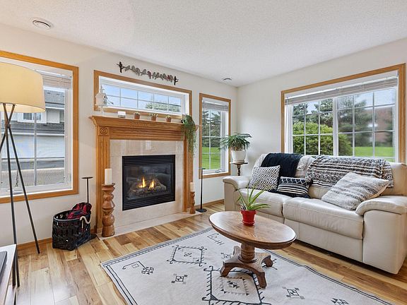 Welcome home to this beautifully maintained and stylishly updated 2 bed, 2 bath end-unit townhome in the heart of Champlin. Enjoy a convenient location near shopping, dining, and quick access to Hwy 169.This home features a welcoming front porch and patio, both surrounded by green space for added privacy and relaxation. Inside, you’ll find vaulted ceilings, rich hardwood floors, and a cozy gas fireplace in the living room. The dining area showcases a reclaimed wood accent wall and a modern light fixture, adding charm and character. The kitchen offers ample cabinet space, a subway tile backsplash, and a spacious walk-in pantry. A main floor half bath adds convenience. Upstairs, a versatile loft makes the perfect home office or additional living space. The large primary bedroom includes two walk-in closets and a walk-through bath. The second bedroom also features a generous closet. Enjoy the convenience of an upstairs laundry area and a separate linen closet. Complete with a 2-car attached garage, this home has everything you need in a prime location.