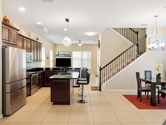 **$5,000 closing cost credit available for contracts executed within 10 days**. Welcome to this beautifully maintained home in Windermere Trails. This home offers an open and inviting floor plan, featuring a combined living and dining area that flows seamlessly into the kitchen. Under-stair storage provides convenient space for seasonal décor and other household items. The kitchen includes builder-selected upgrades from the original construction, featuring granite countertops, a breakfast counter, premium cabinetry, stainless steel appliances, and a 2025 upgraded refrigerator, combining both style and functionality. Ceiling fans are installed throughout the home, and the property is equipped with a whole-house water softener and an upgraded washer and dryer. Carpeting is found on the stairs and throughout the second floor, while tile flooring covers the main level. The staircase is enhanced with elegant wrought iron railings, leading to the upper level that includes three bedrooms, two and a half bathrooms, and a versatile loft area perfect for a reading nook, home office, or play space. Immerse yourself in the enchantment of Walt Disney World Theme Parks, located only a few minutes away and watch the spectacular fireworks from the comfort of your own balcony. This corner lot provides privacy with a fully fenced yard, including a paved patio, green space, and a secure area for families and pets to play. Additional exterior features include gutters and a two-car garage with storage racks. Residents of Windermere Trails enjoy exceptional community amenities, including a pool, playground, dog park, fitness stations, walking trails, and covered pavilions. Ideally located near top-rated schools and minutes from shopping, dining, and entertainment, this home offers the perfect combination of comfort, functionality, and a desirable location. This prime location places you just minutes from major attractions and conveniences. Enjoy easy access to Tibet-Butler Nature Preserve, downtown Windermere’s charming shops and dining, top-rated schools, and multiple golf courses. The home is also a short drive from Walt Disney World, Universal Orlando, and Orlando’s famed entertainment and dining districts, making everyday living both relaxing and connected.