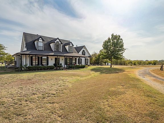 Modern Farmhouse on gated 2 acres with newly remodeled pool and stunning countryside views. This beautifully remodeled 4-bedroom, 2.5-bath modern farmhouse blends charm and function on serene acreage. The open living area features lofted ceilings, wood beams, rich hardwood floors, and a cozy stone fireplace framed by expansive windows and a set of doors that overlooks the pool and countryside beyond. The kitchen has the perfect pristine white glass front cabinets, a large farmhouse porcelain sink, palette pleasing granite, comfortable large island, and convection oven with pot filler. The primary suite opens directly to the patio and pool and includes a spa-inspired bath with dual sinks, seamless glass shower, and dual shower heads. A large 15x14 secondary bedroom and powder bath completes the first floor. Upstairs are two spacious bedrooms, a beautifully updated full bath, and a large 26x13 game room - movie room - second living - office accessed by a separate rear staircase. Outside, enjoy the wide covered patio, newly remodeled pool, and peaceful views. The current owners enjoy their chicken coop, friendly goats, and neighboring cows, all adding to the charm of this private country retreat with shared gated access and a long private drive—true country living just minutes from town conveniences.