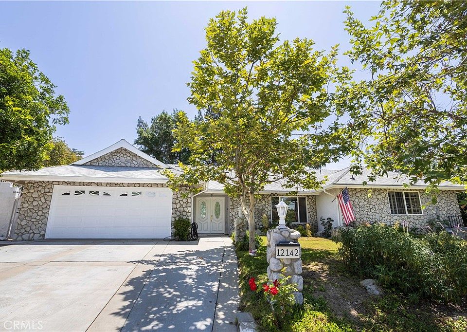$100,000 PRICE REDUCTION! Welcome to this beautifully maintained and spacious 4-bedroom, 3-bathroom ranch-style residence, offering 2,622 square feet of versatile living space in the highly desirable Knollwood-adjacent neighborhood of Granada Hills. Situated on a generous and flat 14,108-square-foot lot with serene mountain views, this home effortlessly combines indoor comfort with outdoor luxury. Step through the inviting covered entry into a bright, welcoming interior that features a tiled foyer, a cozy living room with a gas fireplace, and an open-concept layout that seamlessly connects the kitchen and dining areas. The well-equipped kitchen boasts ceiling-height cabinetry, stainless steel appliances, a breakfast bar, and a spacious dining area—perfect for everyday living and entertaining alike. French doors lead to the adjacent family room, offering an ideal space for relaxation or gatherings. A standout feature of this home is the 640-square-foot permitted addition, complete with its own bathroom and private rear entrance. Formerly used as a recording studio, this flexible space is perfect as a second family room, in-law suite, guest quarters, creative studio, or home office—providing both privacy and endless possibilities. The generously sized primary suite features two separate closets and an en-suite bathroom with a newly tiled shower. Two additional bedrooms and an updated hallway bath offer comfortable accommodations for family and guests. Outside, discover your own private retreat in the expansive, park-like backyard. The 1,000-square-foot permitted covered patio is ideal for year-round outdoor dining, relaxation, or entertaining. With ample room for a pool, garden, recreation, or even a future ADU, the possibilities are truly limitless. Additional highlights include a newer roof, central heating and air conditioning, Aquasure Water Softener System fully owned, water filtration system, automatic dusk to dawn exterior lightening around the property, automatic floodlights, attached two-car garage with direct access, and a prime, peaceful location just minutes from Knollwood Country Club, top-rated schools, local parks, shopping, dining, and convenient freeway access. This exceptional property blends comfort, space, and flexibility in one of Granada Hills’ most sought-after neighborhoods—don’t miss the opportunity to make it your own.