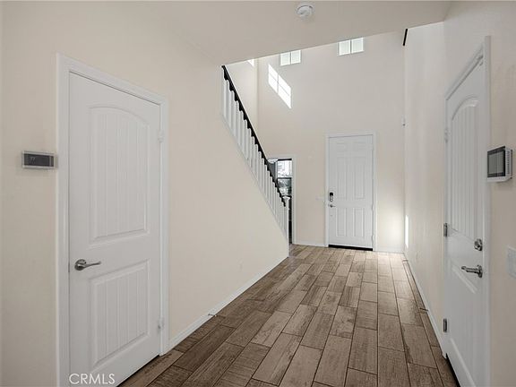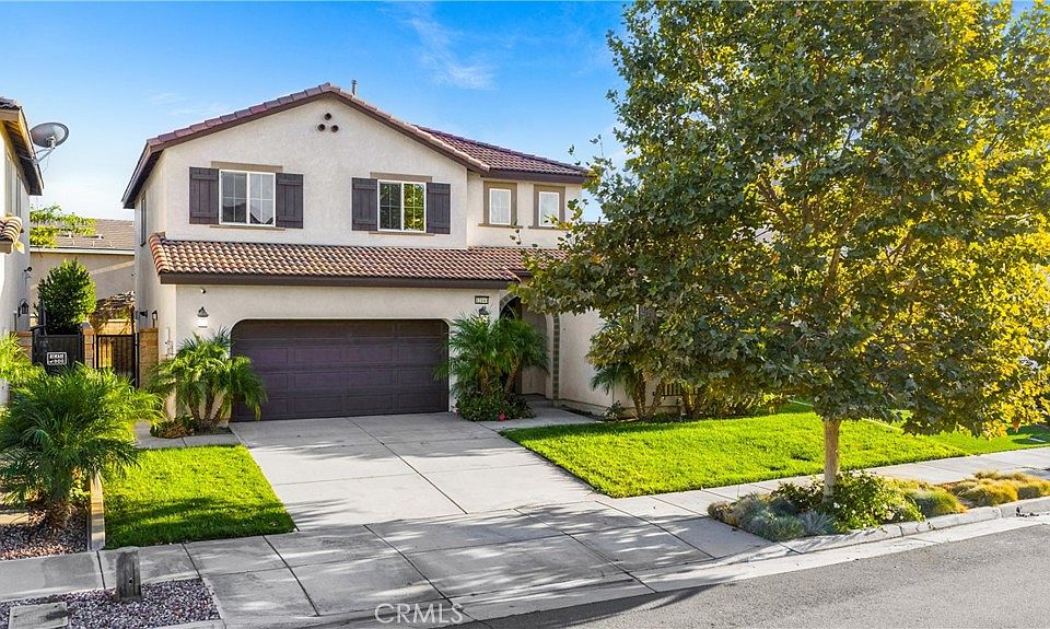 Welcome to this well-maintained two-story Spanish-style home located in the desirable Riverbend community of Jurupa Valley. Built in 2016, this 2,400+ SF home offers 4 beds, 3 baths, plus a large loft. The open and bright layout welcomes you with soaring entry ceilings, an abundance of storage space, with modern chic fixtures and hardwood flooring throughout. The large living area features an abundance of natural light, cozy fireplace, and direct sliding door access to the backyard. The galley-style kitchen opens to the dining and living areas and features granite countertops with a seated island, stainless steel appliances, and a large walk-in pantry. The upper level features the primary en-suite, a large loft, two guest bedrooms, dual sink bathroom, and a large laundry room with built-in shelves and cabinets. The primary bedroom features plenty of natural light with modern sliding barn doors that lead to your dual-sink vanity, soaking tub with separate shower, and large walk-in closet. Additional highlights include tankless water heater and water softener, security system, and a financed solar system. The backyard features a large covered patio with ceiling fan, manicured yard and play area, raised garden bed, and a tiki style gazebo with a fully equipped outdoor kitchen featuring quartz counters, a built in BBQ, sink, range, and mini fridge! Enjoy the many outdoor amenities offered within the community, including a sprawling park, barbecue area, children's playground, basketball court, equestrian trail, and a 9-hole Frisbee golf course. Ideally located nearby an array of shopping centers, supermarkets, and restaurants — including Costco, 99 Ranch Market, and Eastvale Gateway Shopping Mall. Convenient access to major highways 15, 60, 10, and 91 and located in the Corona-Norco Unified School District near highly regarded schools such as River Heights Intermediate School and Eleanor Roosevelt High School.