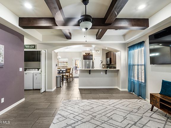 Step inside and be captivated by the elegant coffered ceilings in the open-concept living area, where natural light pours in through large windows, creating a warm and inviting atmosphere. The modern kitchen features stainless steel appliances, granite countertops, and a breakfast bar perfect for casual dining or entertaining guests.