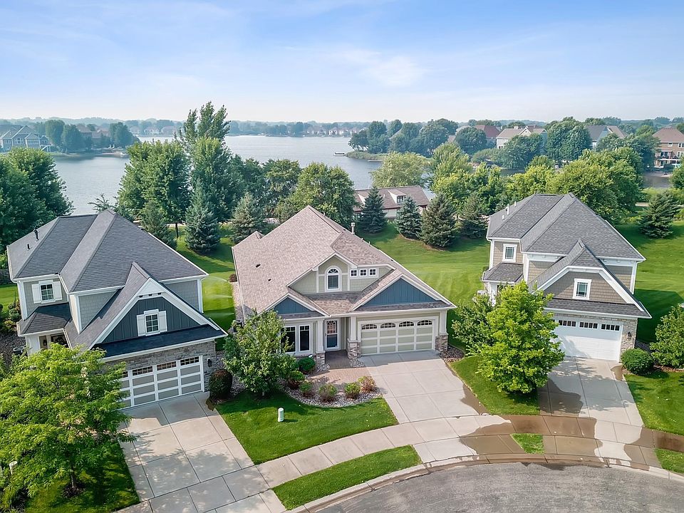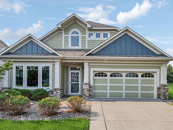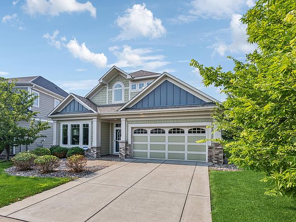 Beautiful 3-bedroom, 3-bath detached townhome in Blaine’s highly desirable Lakes of Radisson neighborhood, perfectly situated on a quiet no-outlet road with stunning curb appeal and a peaceful setting. Inside, a front den or office offers flexibility, while the open-concept layout features a relaxing living room with a gas fireplace that flows into the kitchen, complete with a center island, tile backsplash, stainless steel appliances, pantry, and an additional drop space with cabinets and counter, perfect for a coffee bar or household command center. An elegant arched doorway leads to the vaulted sunroom that flows seamlessly to a spacious concrete patio with a privacy fence. Enjoy a large main level primary suite with tray ceiling, ceiling fan, walk-in closet, and private bath with a soaking tub and separate shower. Main level conveniences include a laundry room with cabinetry and sink, and a guest-friendly half bath. Upstairs, you’ll find two large bedrooms, a full bath, and a family room. Enjoy the comfort of a detached townhome with the ease of association maintained snow removal and lawn care, plus an in-ground sprinkler system. All living facilities on one level! Neutral finishes throughout! Beyond the nicely tree-lined backyard lies Lakeside Commons Park on Sunrise Lake, perfect for year-round enjoyment!