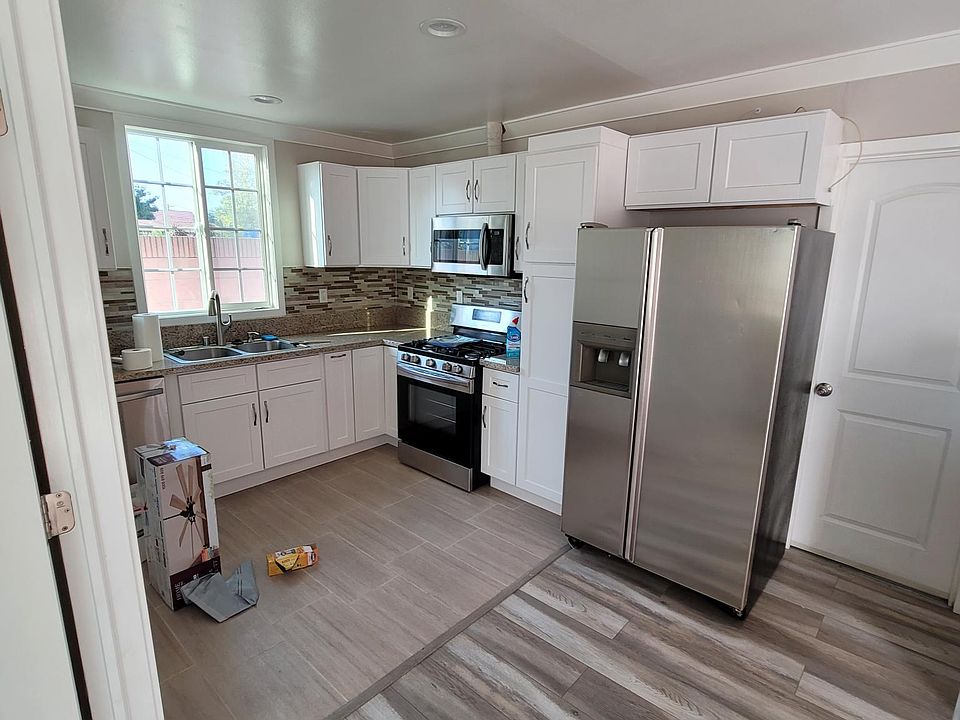 New construction (2021): Rear Unit, 2 bedroom, 1.5 baths, with a bonus space that can be utilized as an office, nook, or nursery. In-unit laundry. All appliances included (gas range with oven, microwave/range-hood combo, refrigerator, dishwasher, washer, and dryer). Central heat and A/C. 4-car private parking with remote gate access at rear of property.