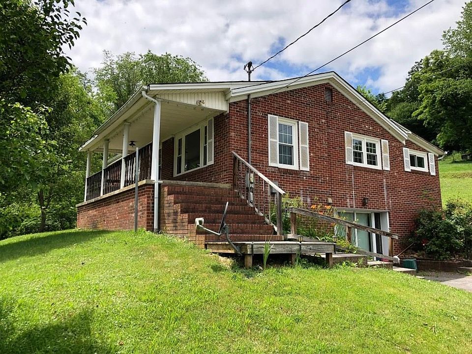 A charming ranch home featuring 3 bedrooms and 1 full bath. This home is ready for the new owner to add their finishing touches. A covered front porch offers mountain views and often colorful evening sky. A spacious living room features wood floors and great natural light. The kitchen area is open and offers a nice space with vinyl flooring. The den is carpeted and features a wood-burning fireplace and rear entry door. The first-floor features two bedrooms and a full bath. The lower level/ basement offers 4 rooms. One is considered a bedroom, one a utility room, one is a storage room and one is a bonus room or office space with a sliding glass door. The entire inside area is heated/cooled. Replacement windows were installed in 2016 along with a new HVAC system. A paved driveway is shared with deeded access. The back yard features a fruitful apple tree along with green space.